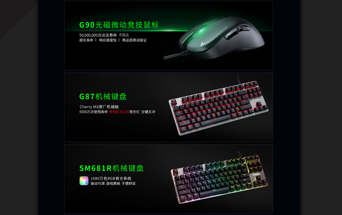“Fühlen”在德語中的是“感受、感知”的含義,取其名,意在“感知現(xiàn)在,創(chuàng)造未來”。富勒成立以來不負(fù)眾望,在感知科技高速發(fā)展的現(xiàn)在,感受時(shí)代的召喚之下,富勒鍵鼠活躍于傳統(tǒng)的辦公領(lǐng)域,又追求時(shí)尚潮流活躍于電競。
